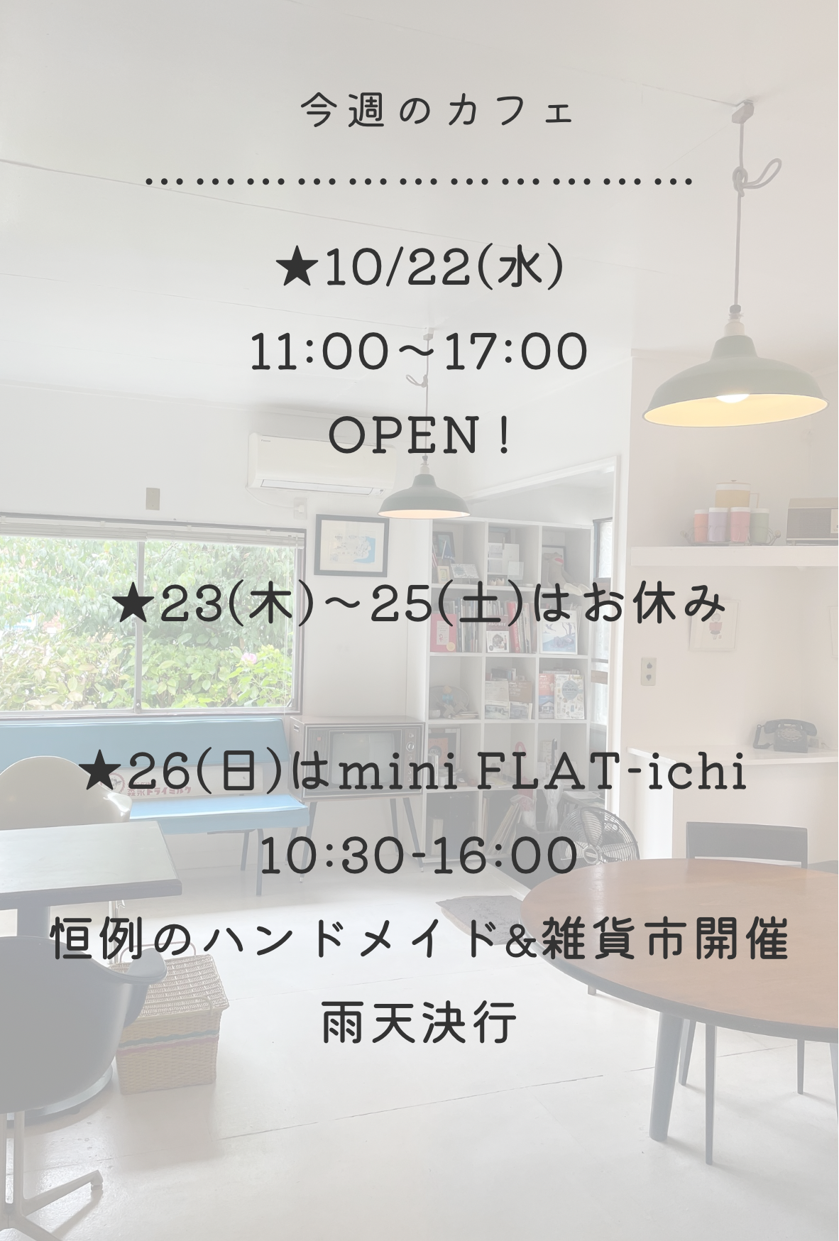 今週はフラット市開催の準備のため、明日1日のオープンです